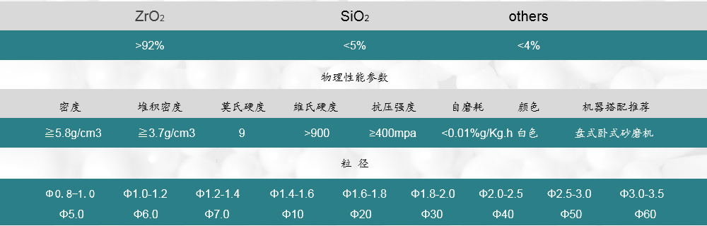 其特點有:密度高、磨耗低、耐磨性好、抗沖擊、抗震穩(wěn)定性好、耐酸堿腐蝕、無污染、提高研磨效率、降低使用成本。